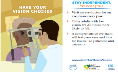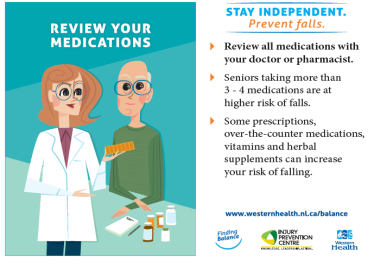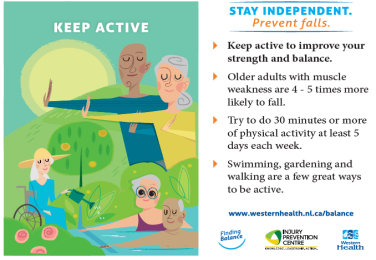 There are a number of factors that can contribute to falls. Finding Balance is an awareness campaign targeted for adults over the age of 55 living in the Western Health region. Finding Balance focuses on real life strategies that older adults can use to lower their risk of falling through the promotion of its three key messages: