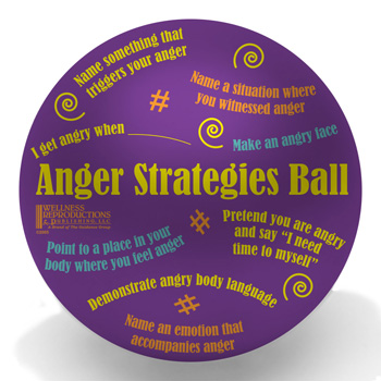 Anger Strategies Ball. Ages: 12-18. Help kids develop the skills to handle their angry feelings with such prompts as "Name an emotion that accompanies anger" and "Name an unhealthy way to manage anger."