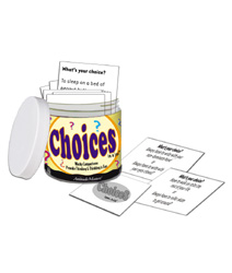Stuffed full of 101 thought-provoking cards that require users to weigh two unusual options, Choices in a Jar is great for discussions, writing exercises, or icebreakers. Grade 5-Adult.