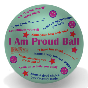 I am Proud Ball. Ages: 12-18. Reinforce the reasons teens can feel good about themselves with such phrases as "Name one way you take responsibility" and "Talk about a skill you have."