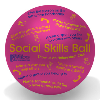 Social Skills Ball. Ages: 12-18. Increase students ability to function socially in a complex world with such prompts as "Name someone you share ideas with" and "Make good eye contact with the person on your right."