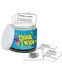 Stuffed full of 101 thought-provoking cards that require users to decide among life-changing options, Think Twice in a Jar is great for discussions, writing exercises, or icebreakers. Includes an activity guide. Grade 5-Adult.